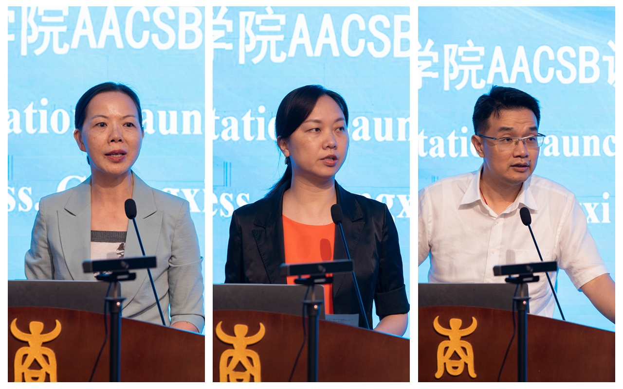刘小玲院长、梁微主任、彭林欣副处长在讲话中充分肯定了开展AACSB认证对学校发展的重要意义,并分别表达了部门对万象城体育awcsport开展AACSB认证的大力支持。