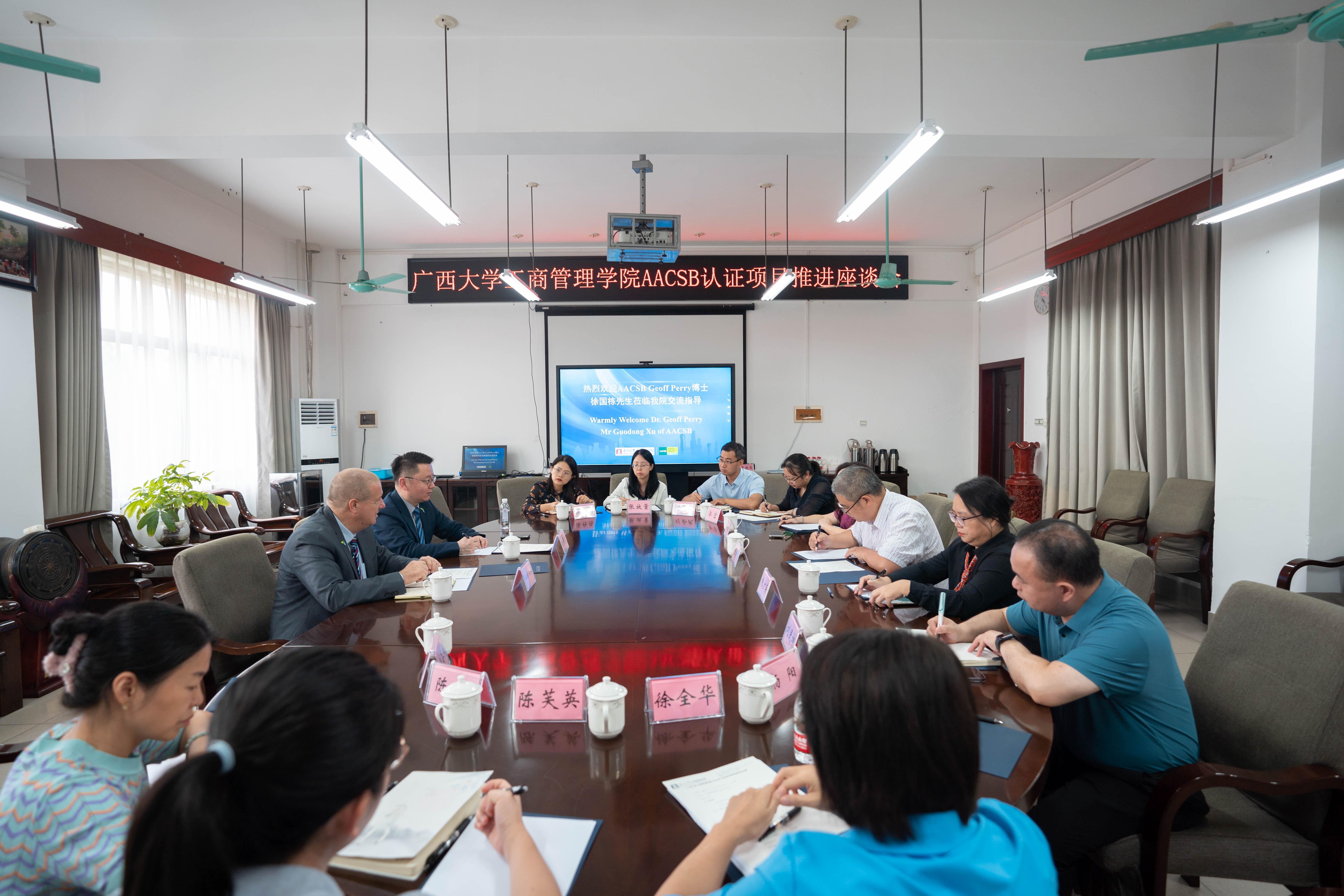 项目启动会后,学院在420会议室举行AACSB认证项目推进座谈会,AACSB专家与万象城官网领导及相关部门负责人就AACSB认证项目相关工作进行了探讨。Geoff Perry副总裁和徐国栋先生对学院的发展情况进行了深入了解,对AACSB认证的标准进行了更深入的解读,回答了学院领导及系、办负责人的问题,为加快学院AACSB认证工作出谋划策。
