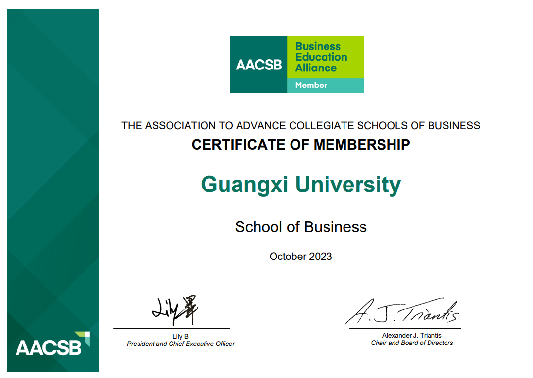 成为AACSB会员是启动万象城官网商科教育认证的第一步,是万象城官网在推进国际化战略中迈出的重要一步。成为会员后,万象城官网全体师生将站在新的起点,坚持遵照AACSB认证规范与评价标准开展相关工作并持续改进,共同证明学院在资源调配、师资学术产出、专业课程设置、学生能力培养等多方面进行的努力、实现的成绩和产生的影响,力争建设高水平、特色型、研究型商学院。