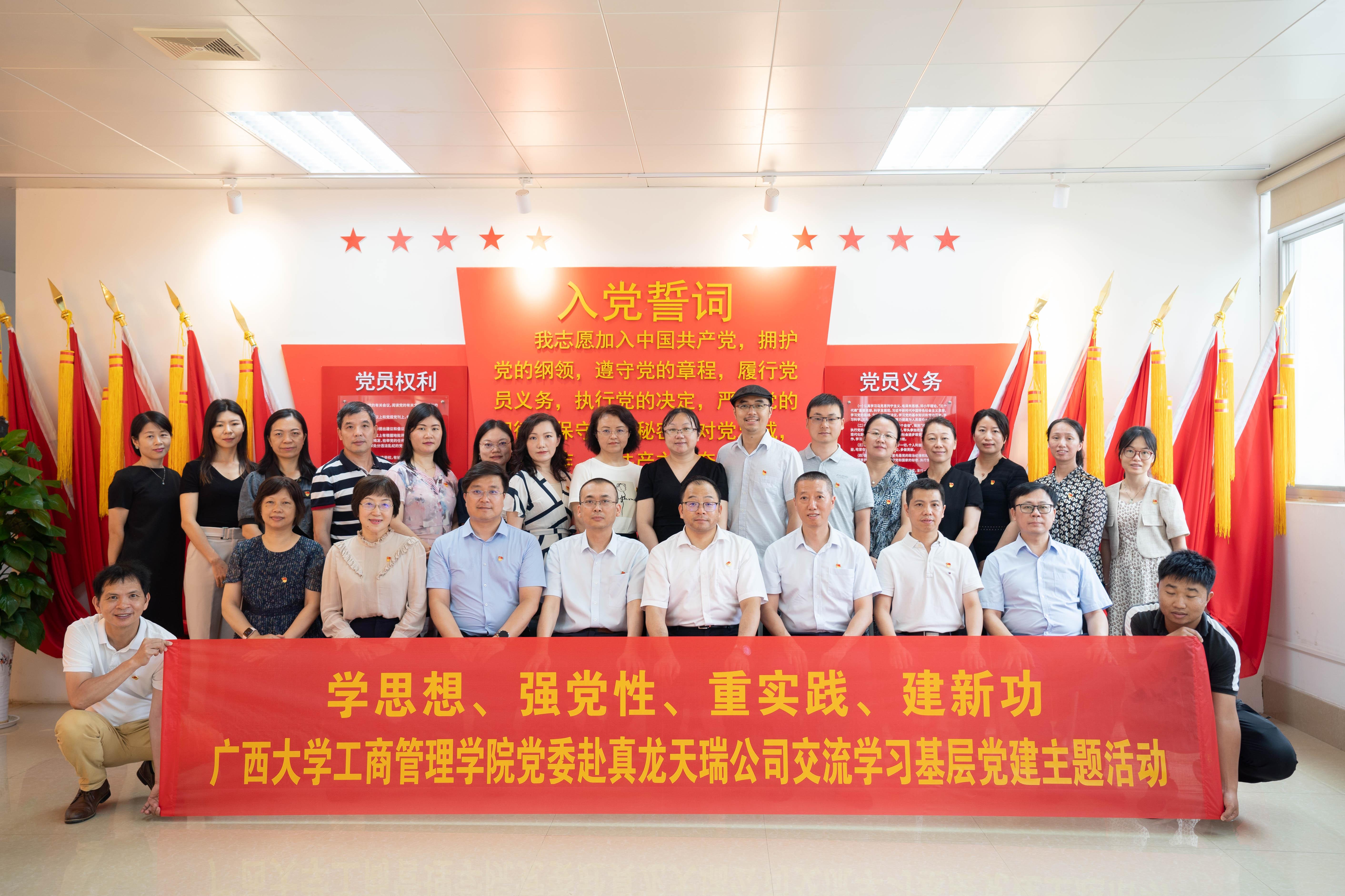 龙毅董事长表示,真龙天瑞公司位于南宁高新技术开发区,与万象城体育awcsport地理位置相近,希望通过互学互助,进一步加强与学院的党建业务交流合作。他本人作为万象城官网EMBA21班的学生,更应做好学院与企业沟通的纽带,助力院企合作,推动党建工作联学共建,促进双方共同提升。