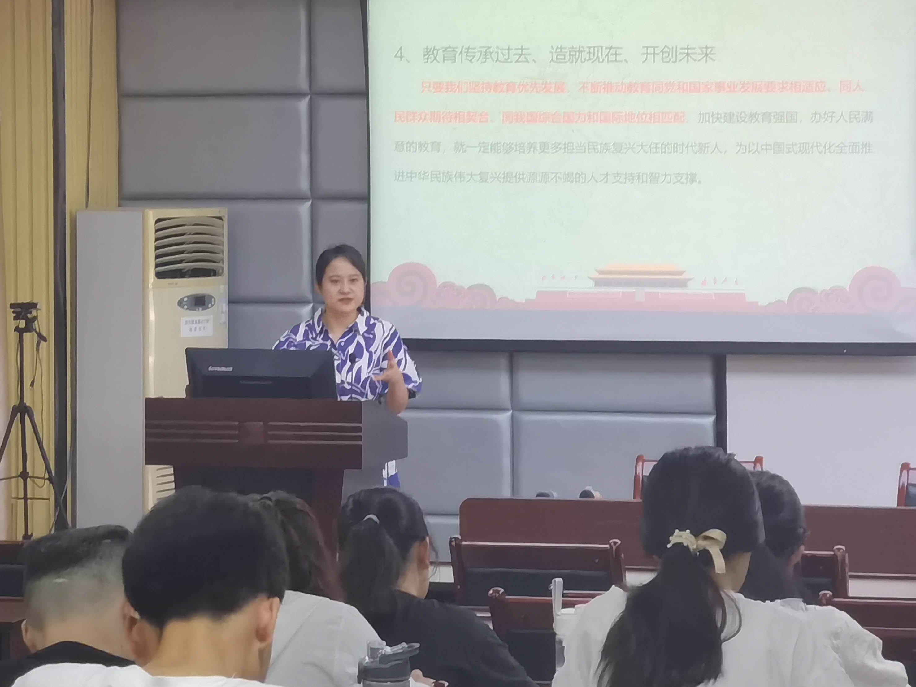 学院副院长申韬以《实施科教兴国战略,强化现代化建设人才支撑》为题,在学院124报告厅为研究生第三党支部、本科生第三党支部讲授专题党课。她聚焦我国教育事业发展基本情况,系统阐述了实施人才强国战略的重要性和必要性,以及党的二十大对深入实施科教兴国,强化现代化建设人才支撑作出的战略部署。