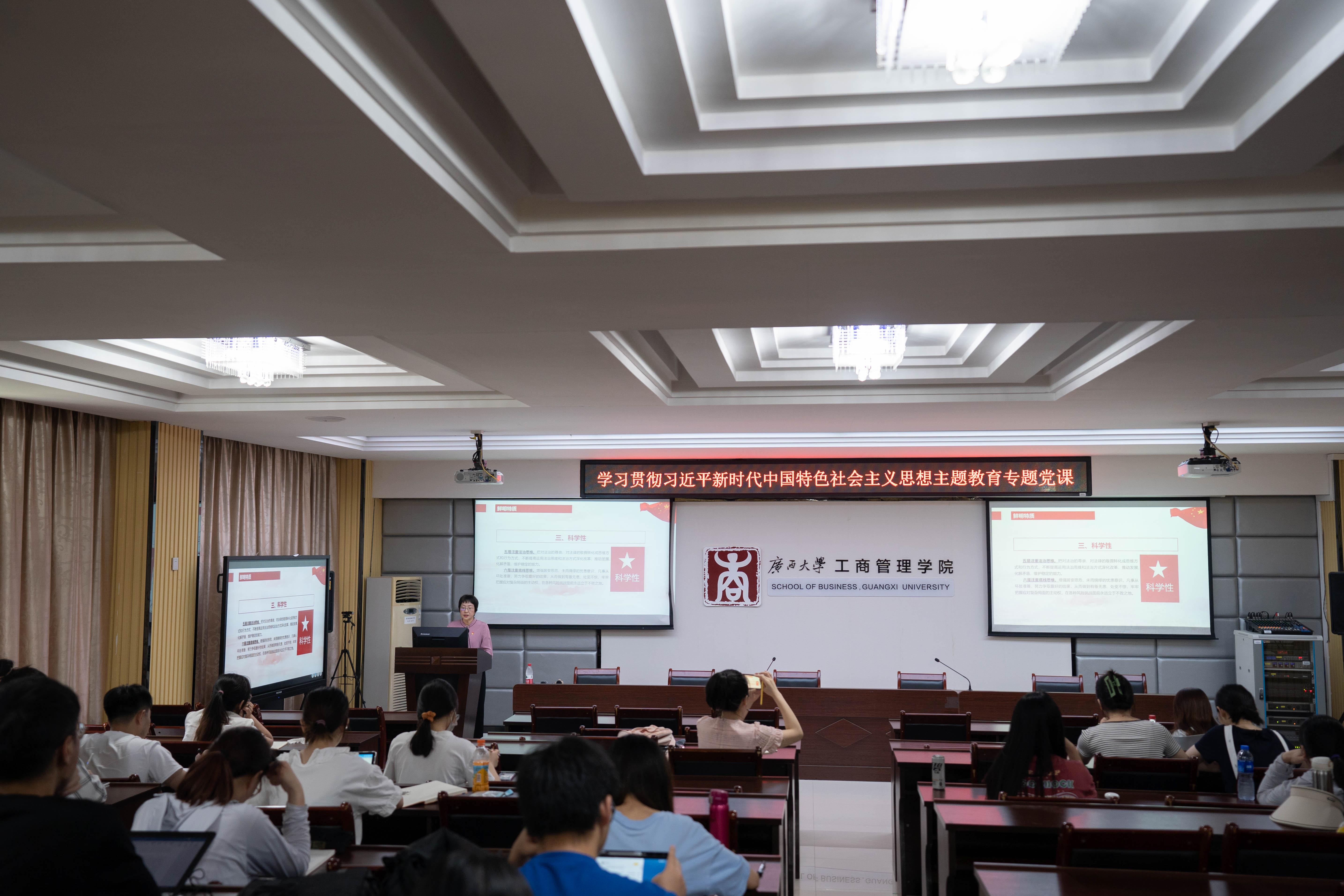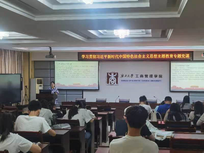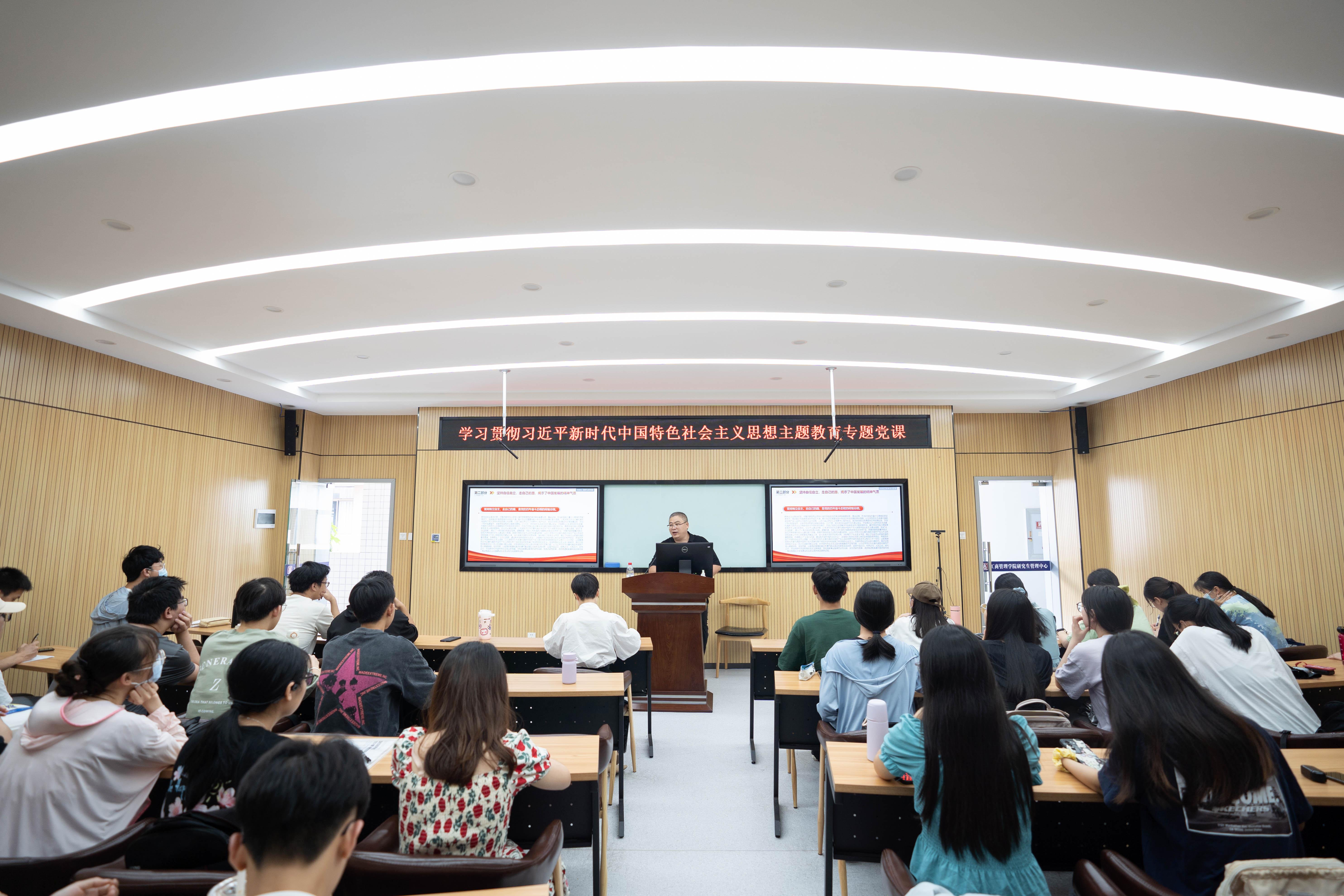 学院副院长廖东红以《学习贯彻习近平新时代中国特色社会主义思想》为题,在学院124报告厅为研究生第一党支部和本科生第四党支部讲授专题党课,她就习近平新时代中国特色社会主义思想主题教育概述、主要内容以及鲜明特质进行了阐述。她号召大家以主题教育为契机,深入学习贯彻党的二十大精神,努力把学院建成“区域有品牌,国内有特色,国际有影响”的新时代高水平万象城体育awcsport。