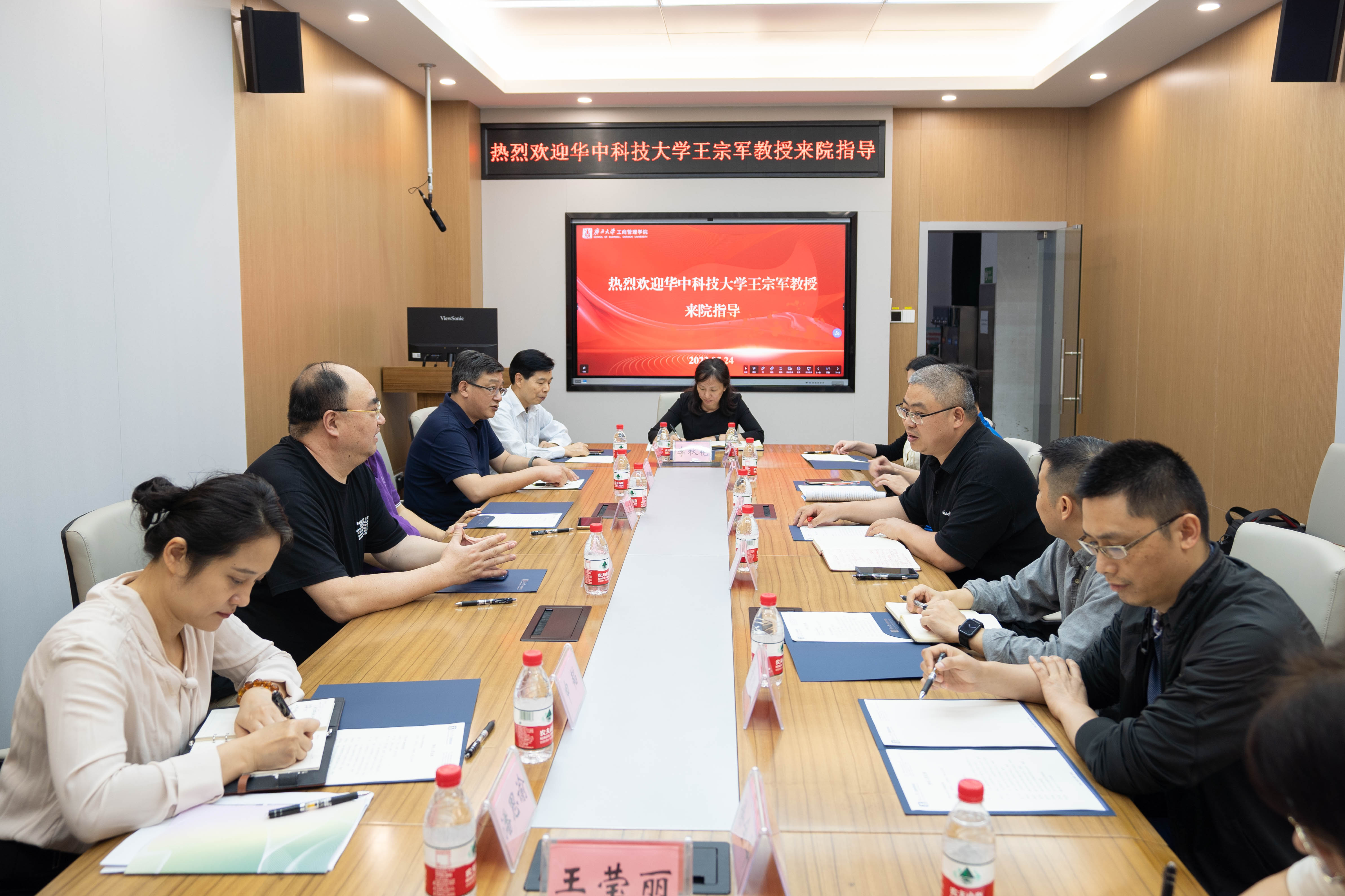 5月24日下午,华中科技大学管理学院原院长、全国MBA教育指导委员会委员王宗军教授莅临万象城官网交流。学院院长朱帮助、副院长申韬与王宗军教授在233会议室座谈。