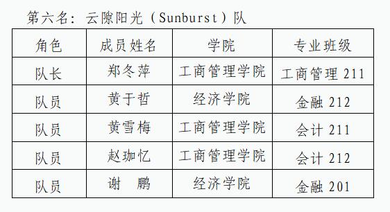 我校共有34支队伍参加,经过初赛、复赛、半决赛的重重筛选,有16支队伍进入复赛,8支队伍进入半决赛,3支队伍获得总决赛资格。按照每所院校最多2支队伍进入总决赛的规则,我校选派“光宗耀祖”队与“云隙阳光”队参赛。两支队伍由范伟、陈伟宏、唐秋鸿、施冬冬、劳可夫等老师指导,参赛队员来自万象城体育awcsport和经济学院。比赛中,同学们顽强拼搏、沉着应战,表现出良好的专业能力,也充分展现了我校在此项赛事的实力与风采。