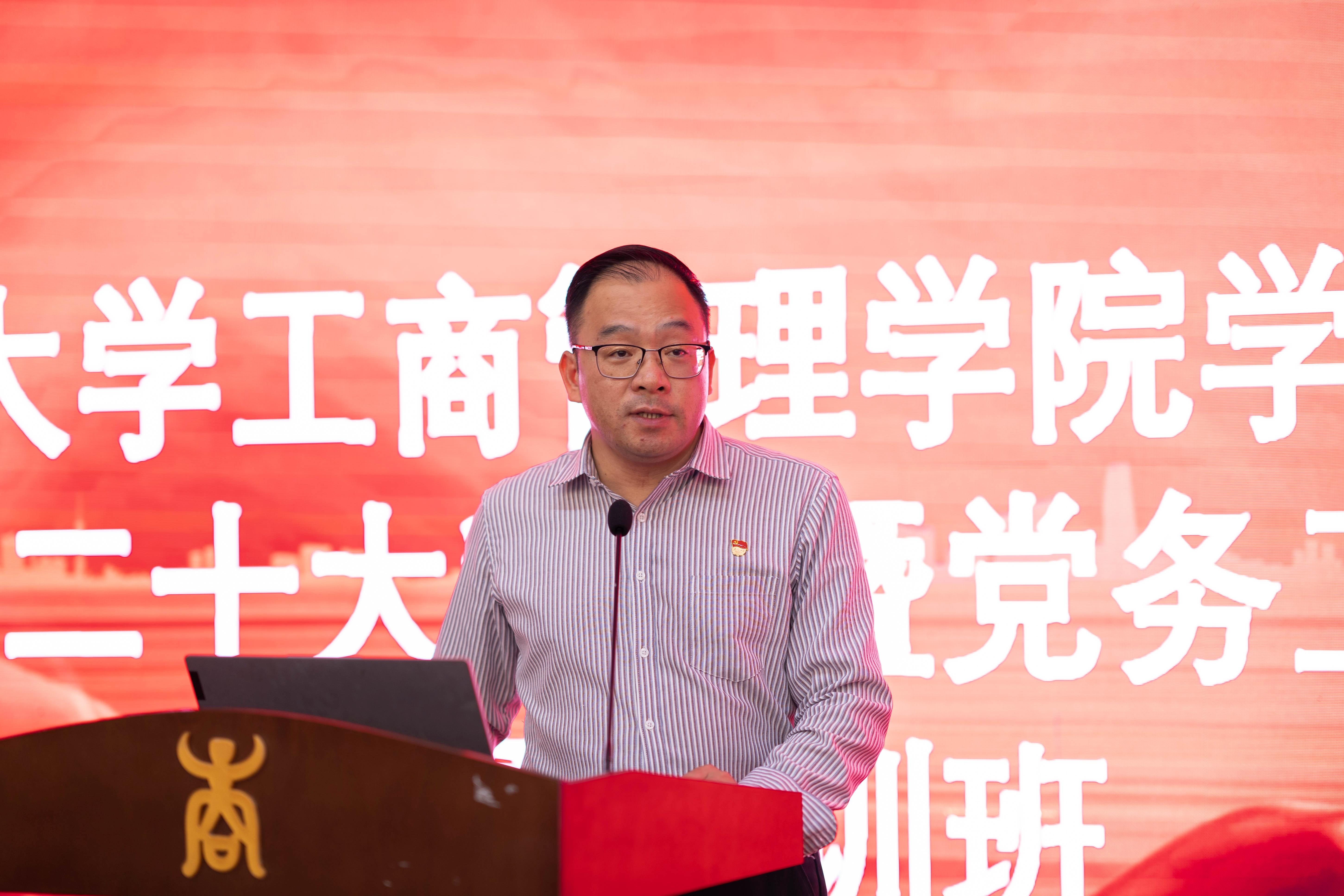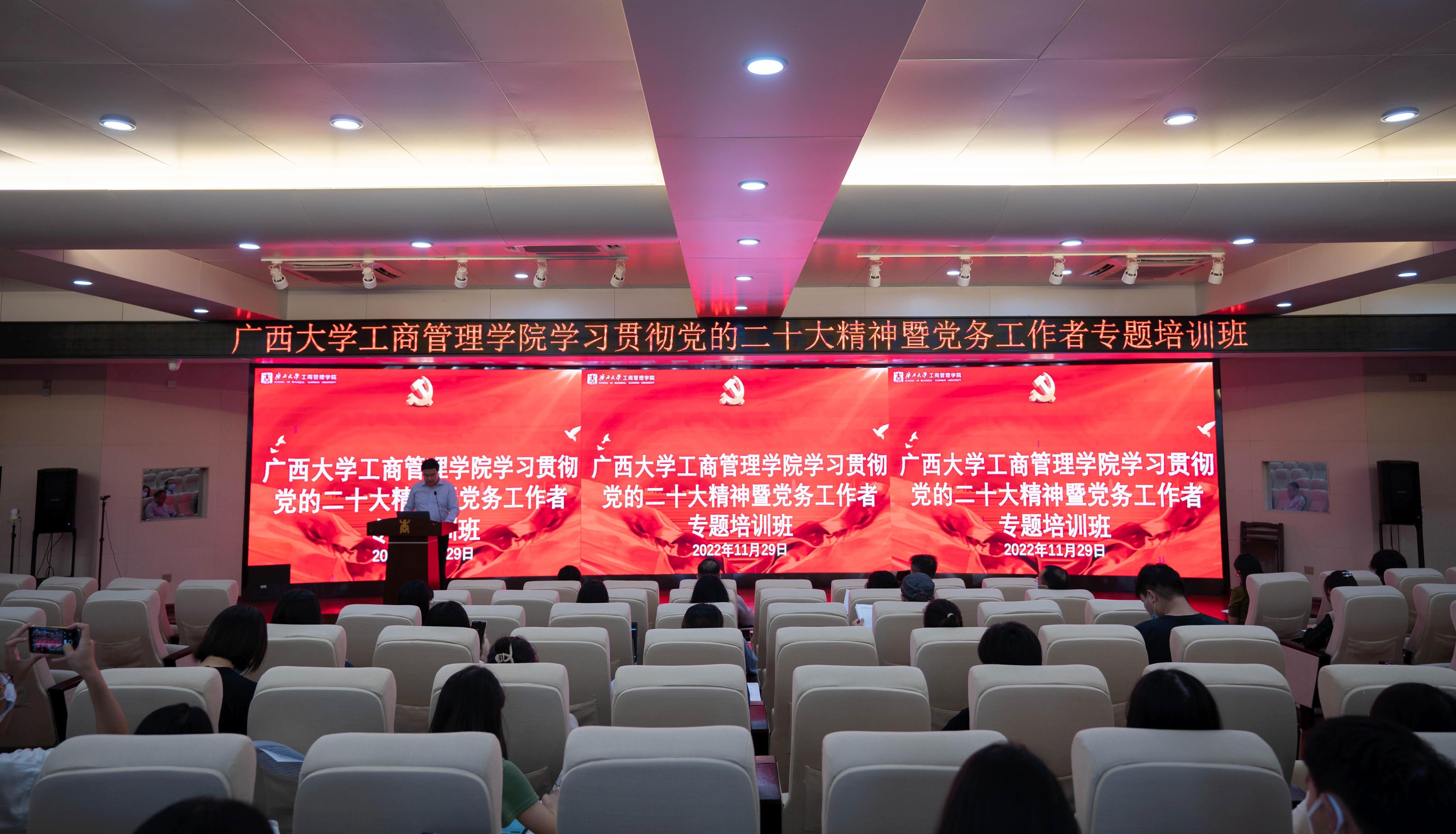为全面学习、全面把握、全面落实党的二十大精神,认真领会习近平总书记重要讲话精神,11月29日下午,万象城官网深入学习宣传贯彻党的二十大精神宣讲报告会暨党务工作者培训班开班式在学院128报告厅举行。学校党委宣传部副部长覃安基受邀出席并作意识形态专题辅导报告。学院党委书记罗诚出席开班式并作动员讲话,党委副书记黄晋主持开班式。全院党务工作者、有关党员干部和师生参加了培训。