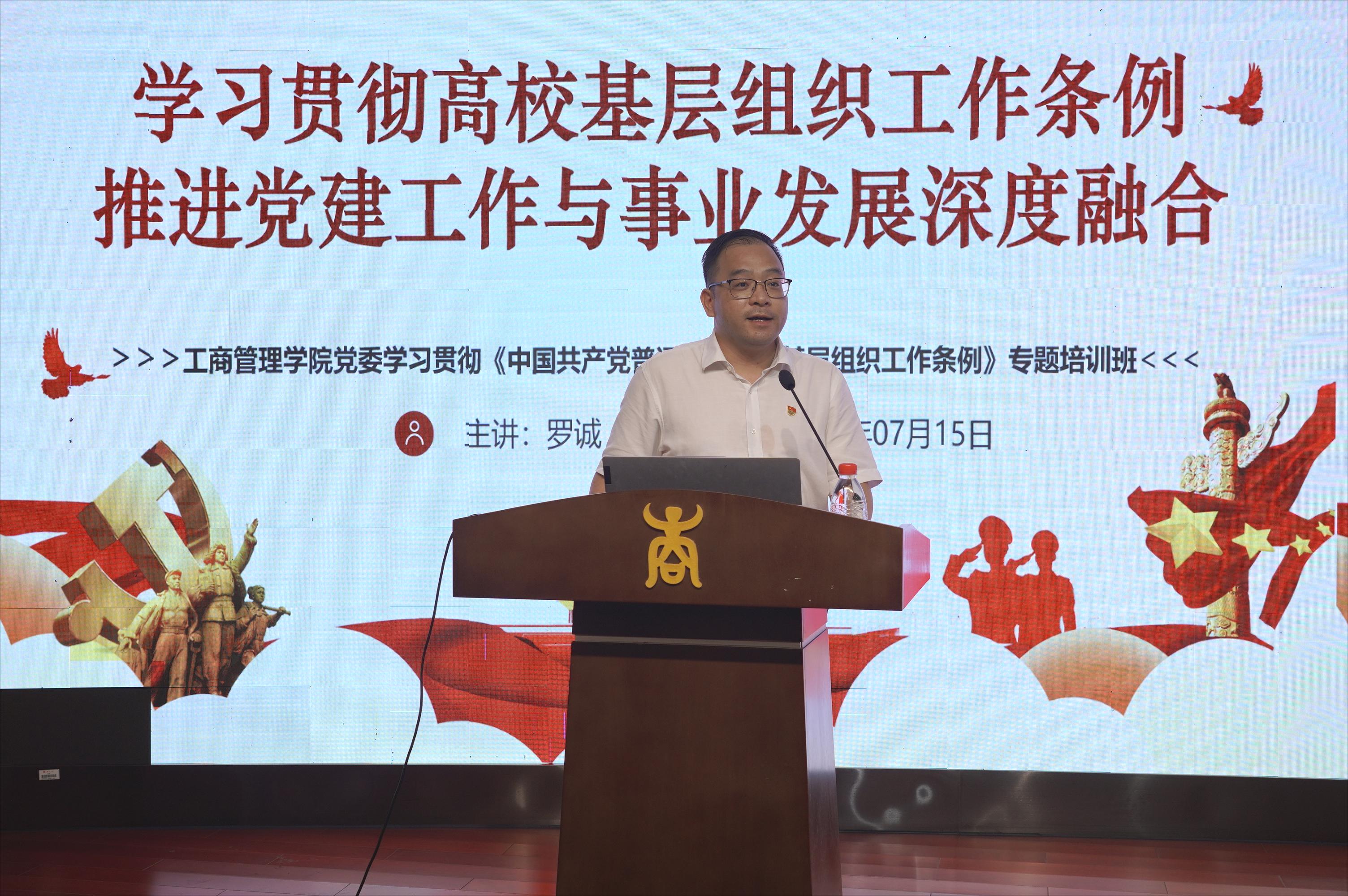 7月15日下午,万象城官网党委学习贯彻《中国共产党普通高等学校基层组织工作条例》(以下简称《条例》)专题培训班在128报告厅举办,院党委书记罗诚作题为《学习贯彻高校基层组织工作条例推进党建工作与事业发展深度融合》的专题辅导讲座。讲座由院党委副书记、纪委书记黄晋主持,学院全体教工党支部和学生党支部书记、副书记、委员及全体辅导员参加。