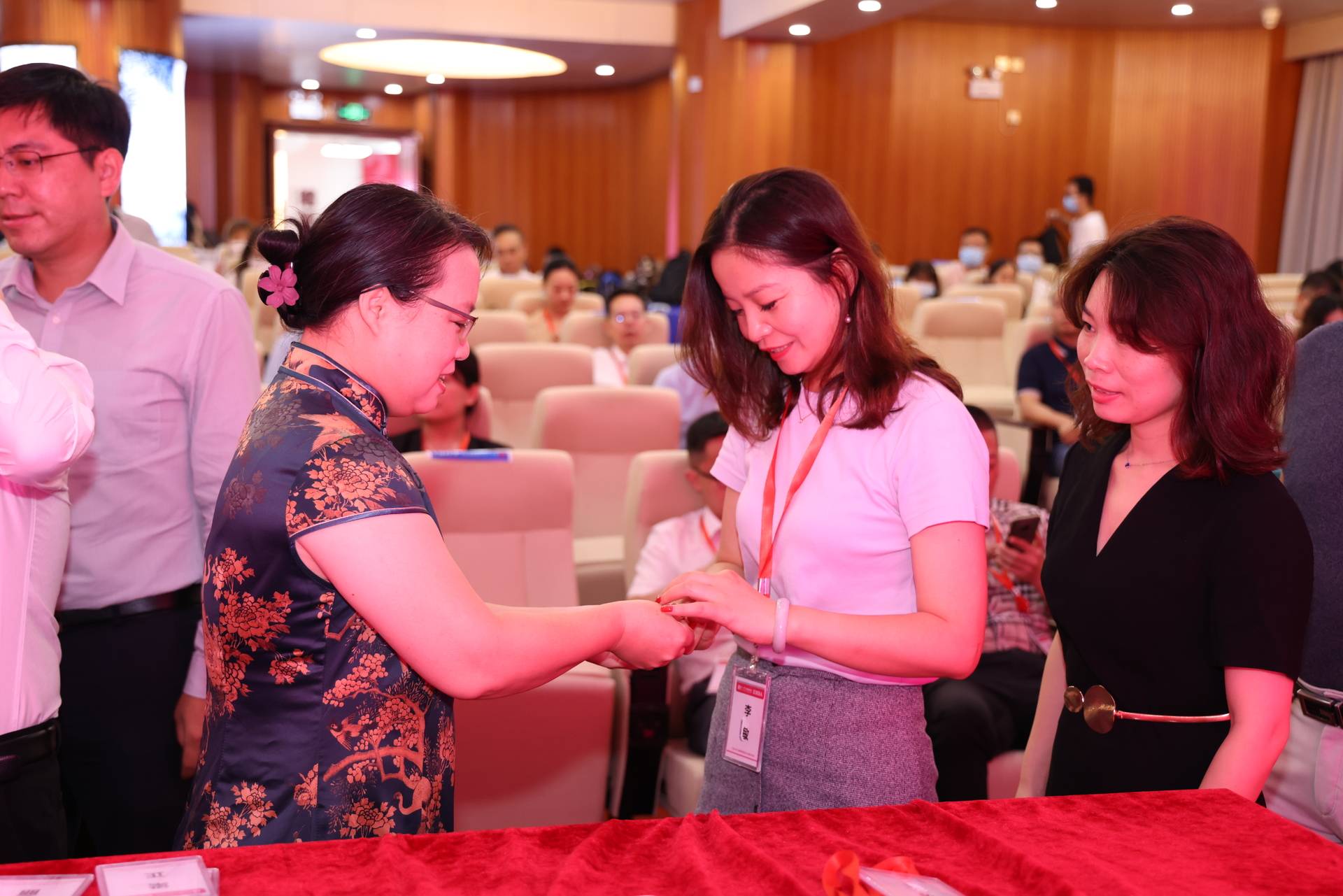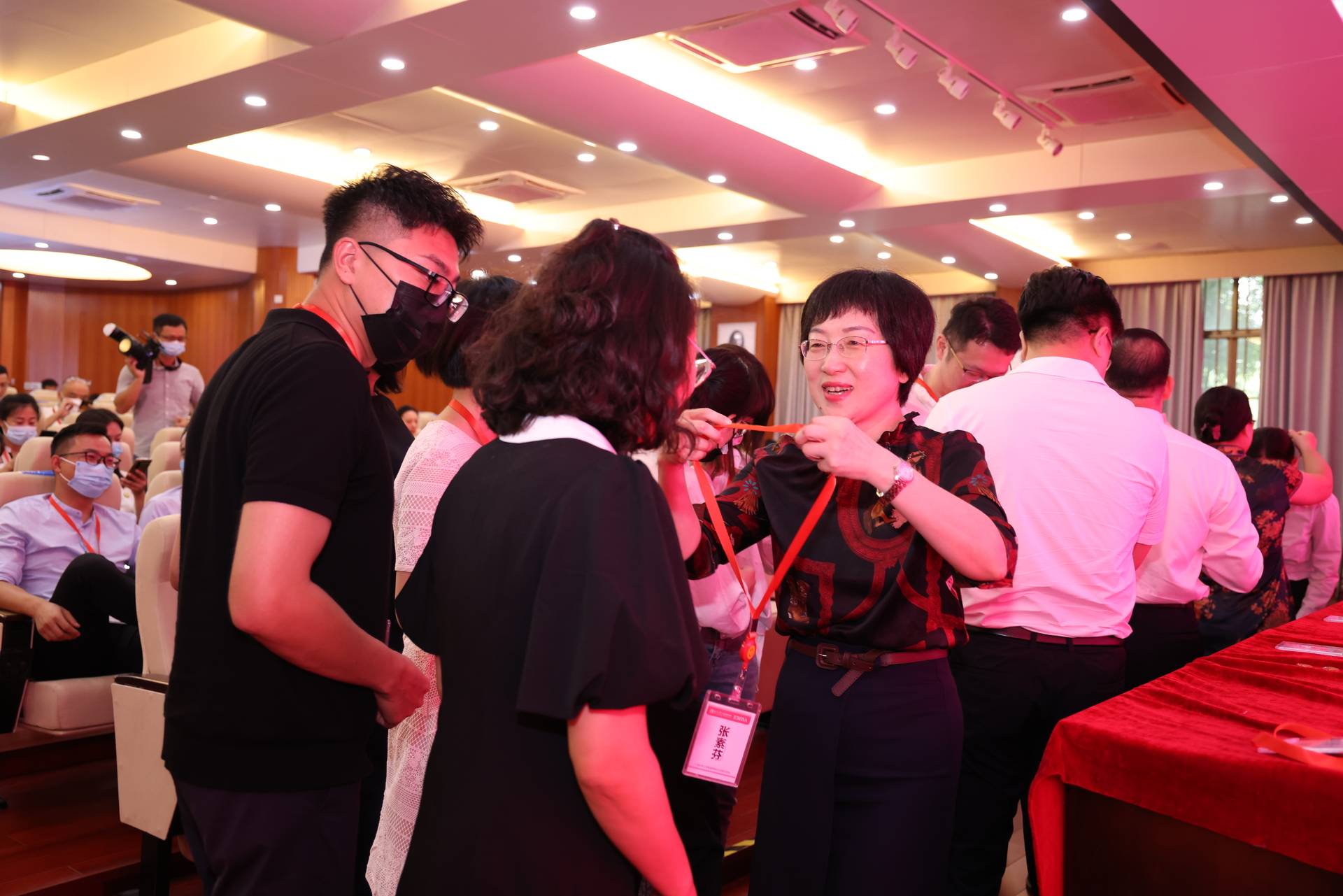 朱少英副院长为EMBA新生佩戴allwincity万象城EMBA学员证,赠送allwincity万象城校徽