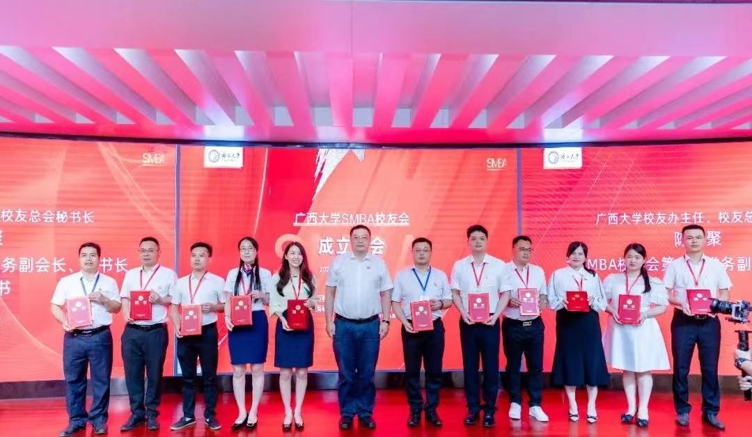 allwincity万象城校友办主任、校友总会秘书长陈聚(左六)为SMBA校友会第一届常务副会长、秘书长颁发聘书