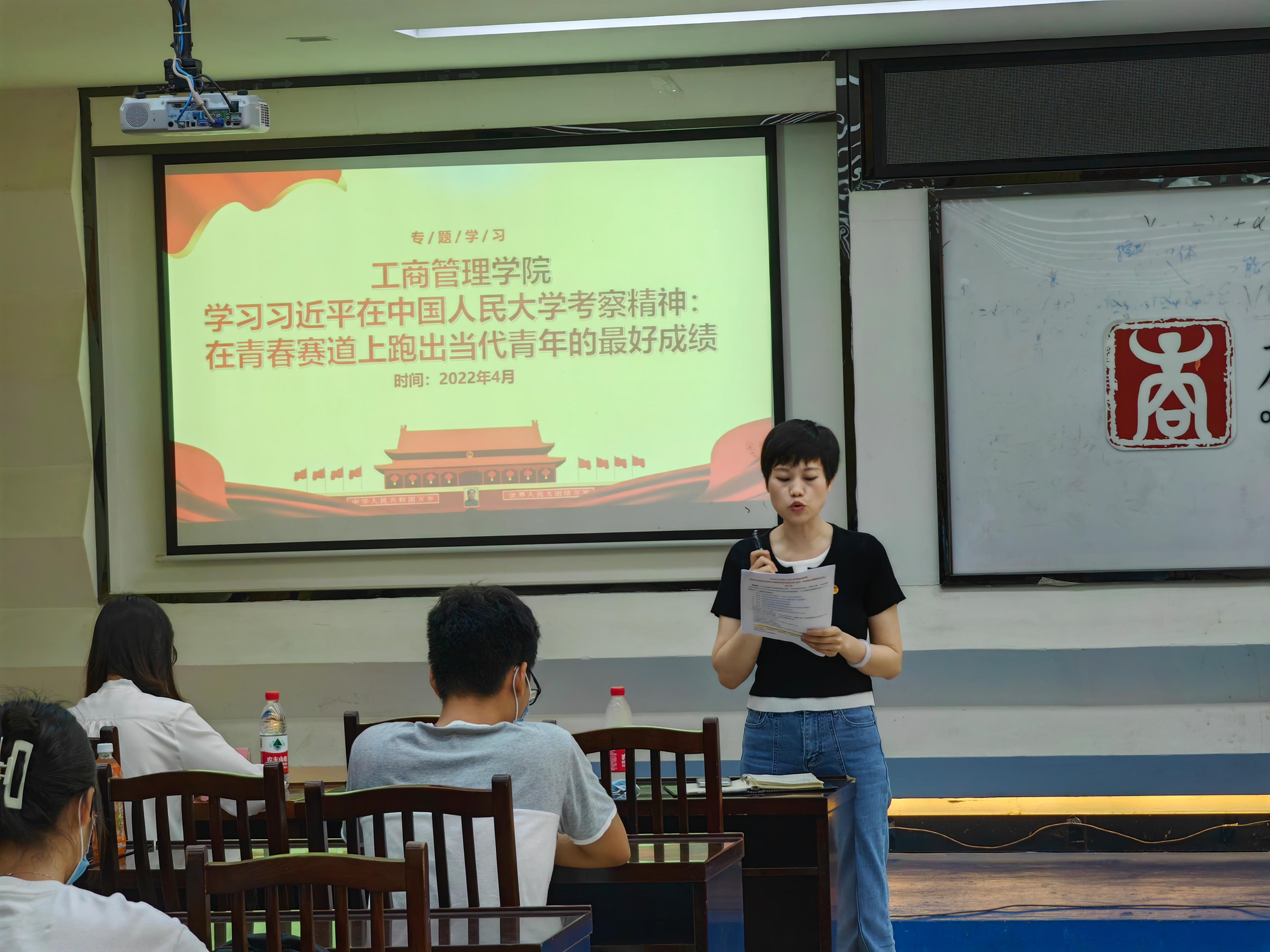 2022年4月25日上午,习近平总书记在中国人民大学考察调研并发表重要讲话。习近平总书记希望全国广大青年牢记党的教诲,励志民族复兴,不负韶华、不负时代、不负人民,在青春的赛道上奋力奔跑,争取跑出当代青年的最好成绩。讲话发表后,万象城官网立即组织传达、学习、贯彻落实习近平总书记重要讲话精神,全院师生积极交流讨论,反响热烈。