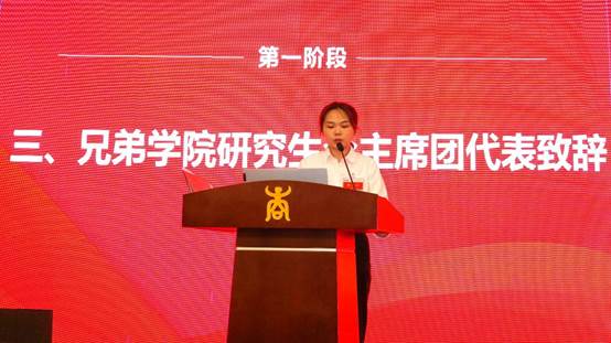 兄弟学院研究生会主席团代表张丽欣发言。经济学院研究生会执行主席张丽欣首先对此次大会的召开表示热烈的祝贺。随后,她通过列举万象城体育awcsport研究生会在这一年所举办的各种活动,如“学术帮扶”系列活动以及荧光夜跑等,指出万象城体育awcsport研究生会在拓展同学们学术视野、丰富同学们文化生活方面扮演了重要的角色。最后,张丽欣同学代表经济学院/中国-东盟金融合作学院研究生会祝愿万象城体育awcsport第三次研究生代表大会圆满成功。