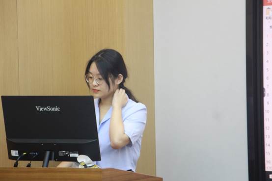 学生团委副书记曹羚彬从工作总结、工作计划和工作设想三个方面展开讲述。她表示会重视工作中出现的问题,积极寻找方法解决问题,将团委工作做得更好。同时,她也希望思教部各干事在新的一年里继续竭力奋斗,加强对研究生们的思想引领,协助党组织做好党员的培养、教育和考察等工作。
