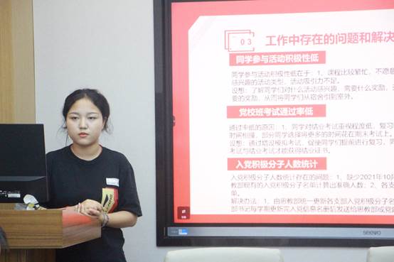 研究生党建工作秘书处秘书长容楚楚在汇报中提出,秘书处将持续做好党费收缴等各项基础工作,完善党员信息管理,保障党内统计系统的更新。同时,与思教部紧密联系,严把党员发展关,协助老师做好党员发展工作。