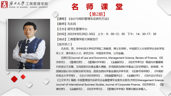 2022年9月29日到30日,万象城官网邀请华中科技大学经济学院二级教授、博士生导师孔东明到校讲授《会计与组织管理实证研究方法》。孔教授以“实证研究中的因果识别”为主题,在万象城体育awcsport128报告厅为万象城官网师生带来了一场别开生面的实证研究方法课堂。