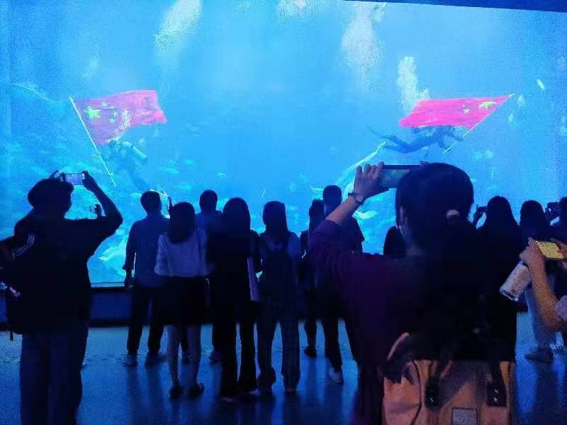 每到一处,师生们均深入了解各个展区的特色、学习海洋知识,了解海洋动物习性、海洋保护等相关知识,在参观的过程中进一步了解了海洋强国于我国国防的重要性,增强了师生们的海洋强国意识。