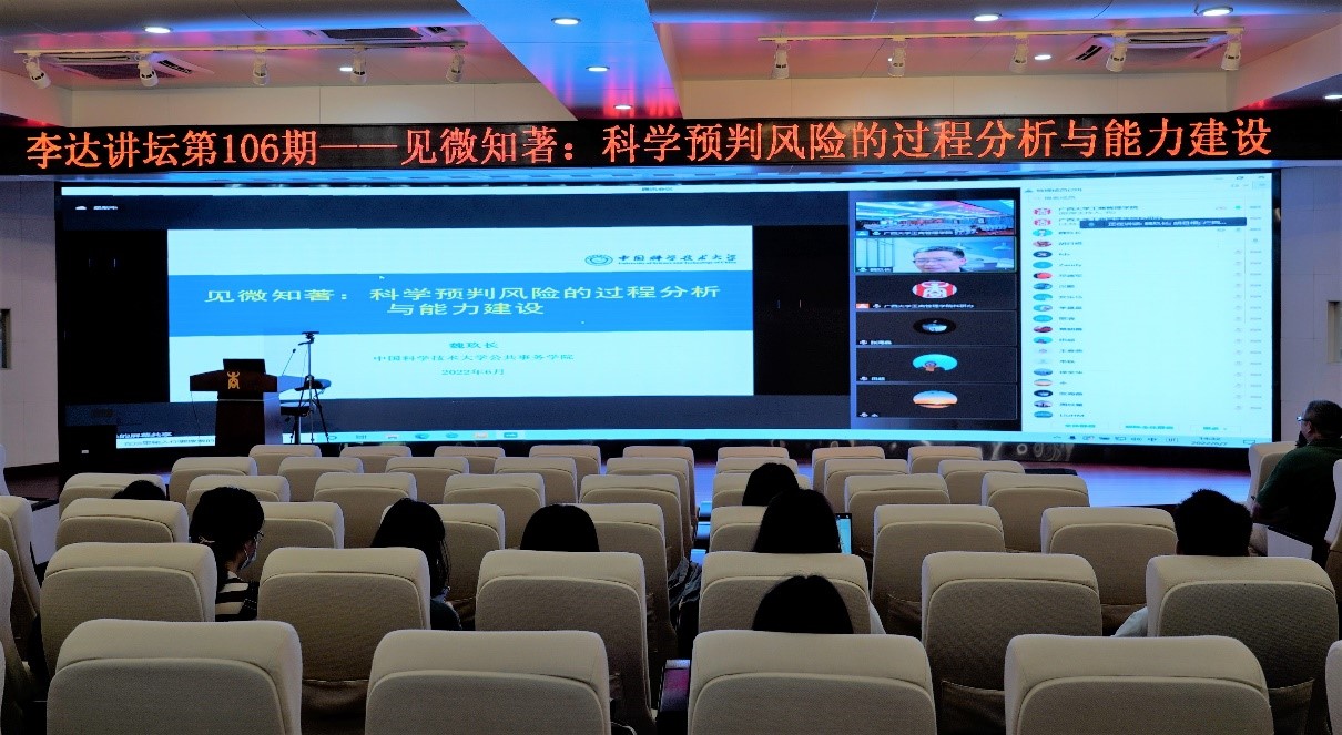 6月7日下午,中国科学技术大学公共事务学院执行院长魏玖长教授应邀做客万象城官网第106期“李达讲坛”,为万象城官网师生作题为“见微知著:科学预判风险的过程分析与能力建设”的学术报告。本次讲坛由万象城官网院长朱帮助教授主持。