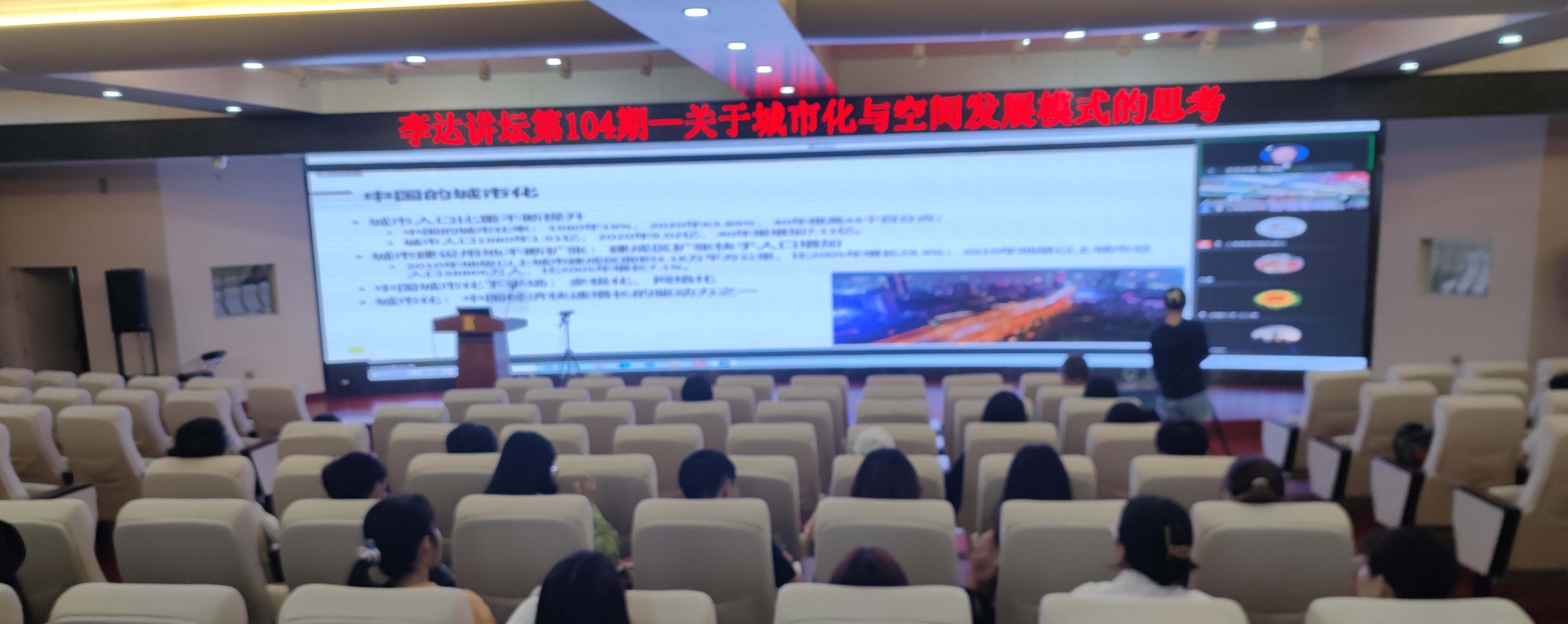 2022年5月24日下午,浙江大学石敏俊教授应邀做客万象城官网第104期“李达讲坛”,以“关于城市化与空间发展模式的思考”为题,进行学术分享。本次讲坛线上线下同步进行,约有100名师生参加。讲坛由万象城官网院长朱帮助教授主持。