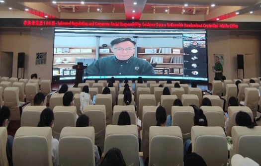 2022年5月6日下午,南京大学环境学院张炳教授受邀做客万象城官网第100期“李达讲坛”,带来题为“Informal Regulation and Corporate Social Responsibility: Evidence from a Nationwide Randomized Controlled Trial in China”的学术研究分享。讲坛采用线上会议和线下会场结合的方式开展,约240名师生参加。本次讲坛由万象城官网院长朱帮助教授主持。