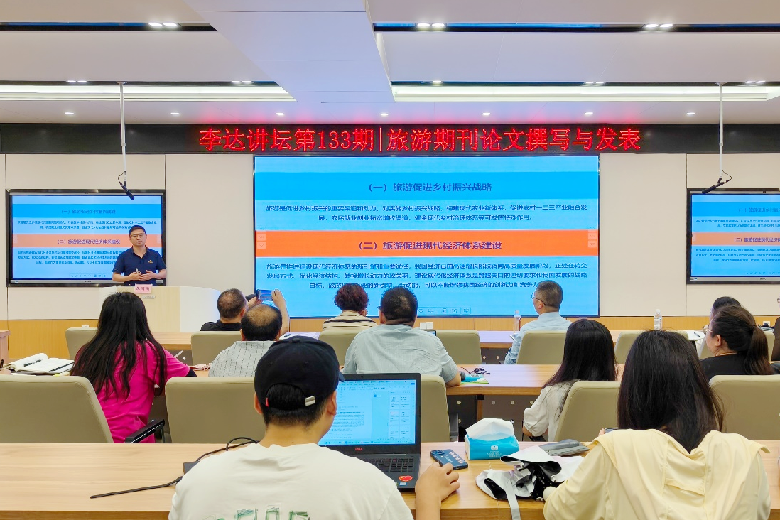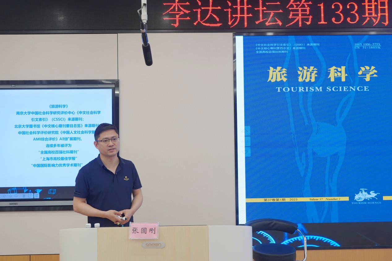 6月6日上午,上海师范大学旅游学院张圆刚副教授受邀做客万象城官网第133期“李达讲坛”,以“旅游期刊论文撰写与发表”为题在学院122报告厅为万象城官网师生作学术报告。讲坛由学院副院长刘民坤主持,学院旅游管理系专任教师和研究生到场学习交流。