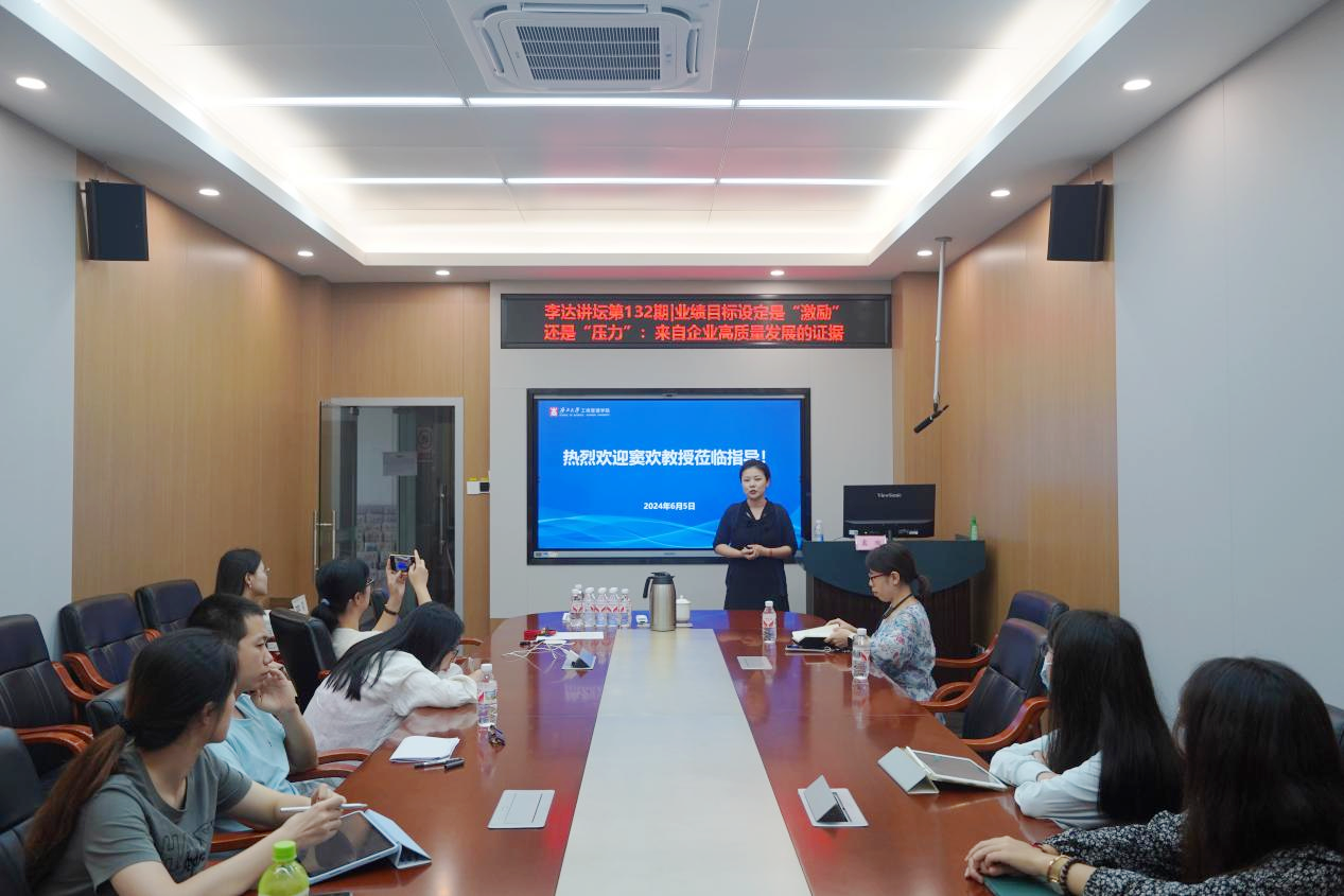 6月5日下午,暨南大学管理学院会计系副主任、博士生导师、全国会计高端人才窦欢教授受邀做客第132期“李达讲坛”,以“业绩目标设定是‘激励’还是‘压力’:来自企业高质量发展的证据”为题在学院234研讨室为万象城官网师生作学术报告。万象城官网相关研究方向的教师和研究生参加学习交流。