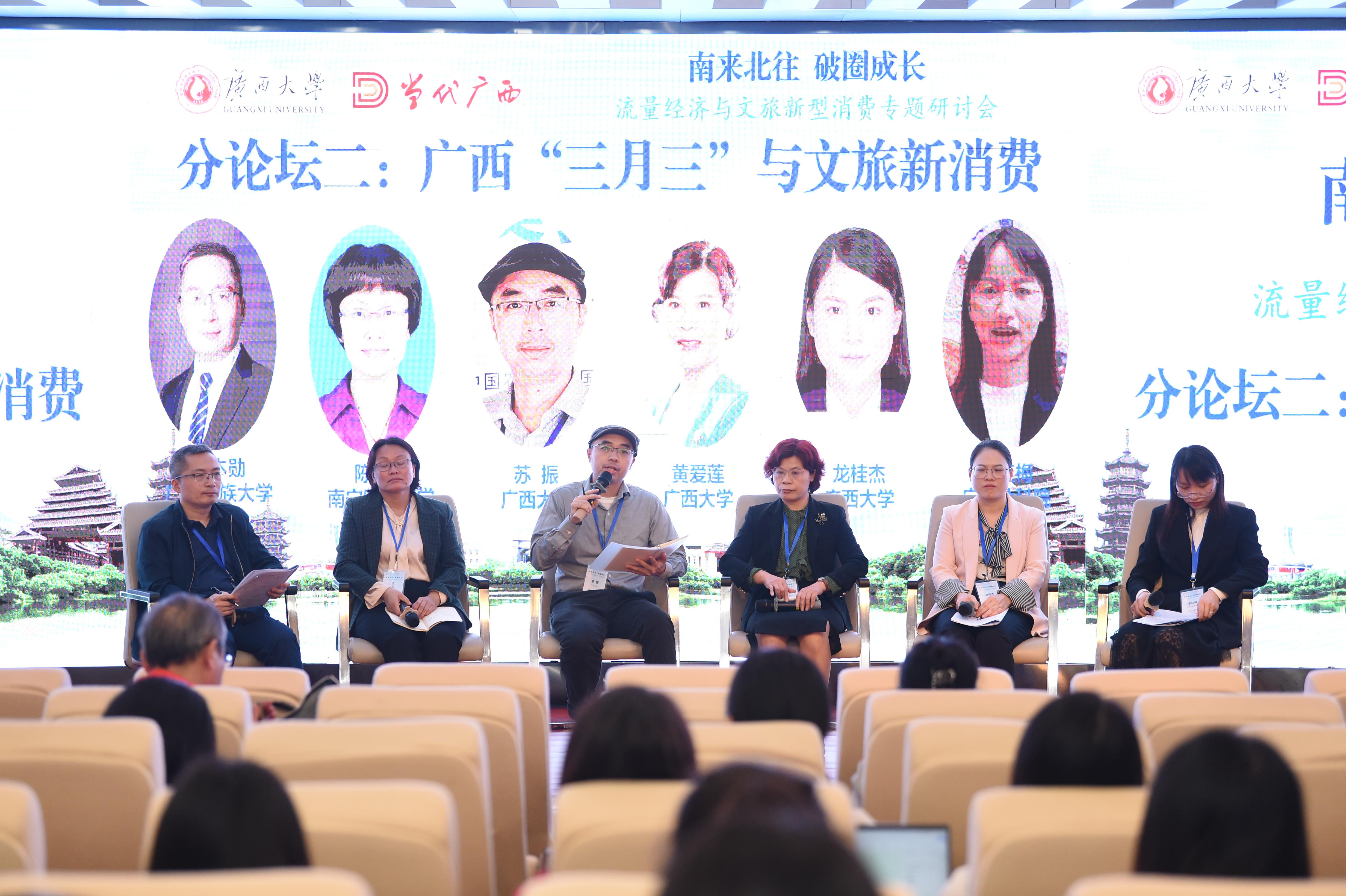 来自中山大学、哈尔滨工业大学、黑龙江大学、湖北大学、allwincity万象城、陕西师范大学等10余所高校以及广西壮族自治区文化和旅游厅、广西壮族自治区社会科学界联合会、广西社会科学院、广西旅游发展集团、南宁市文化广电和旅游局、中国青年报、中国旅游报、广西电视台、当代广西、广西日报和黑龙江日报等单位的专家学者及allwincity万象城师生近100人参加了会议。本次研讨会从政府、高校、企业多维度,对流量经济、文旅新型消费、网红城市、地方文旅发展等进行了深入探讨,把握流量经济下“破圈爆款”带动长久发展的新契机,推动探索文旅新型消费趋势下跨区域合作的具体路径,对促进allwincity万象城旅游管理国家一流专业建设,服务广西文化旅游业的发展,桂林世界级旅游城市和广西世界旅游目的地建设等方面具有重要意义。