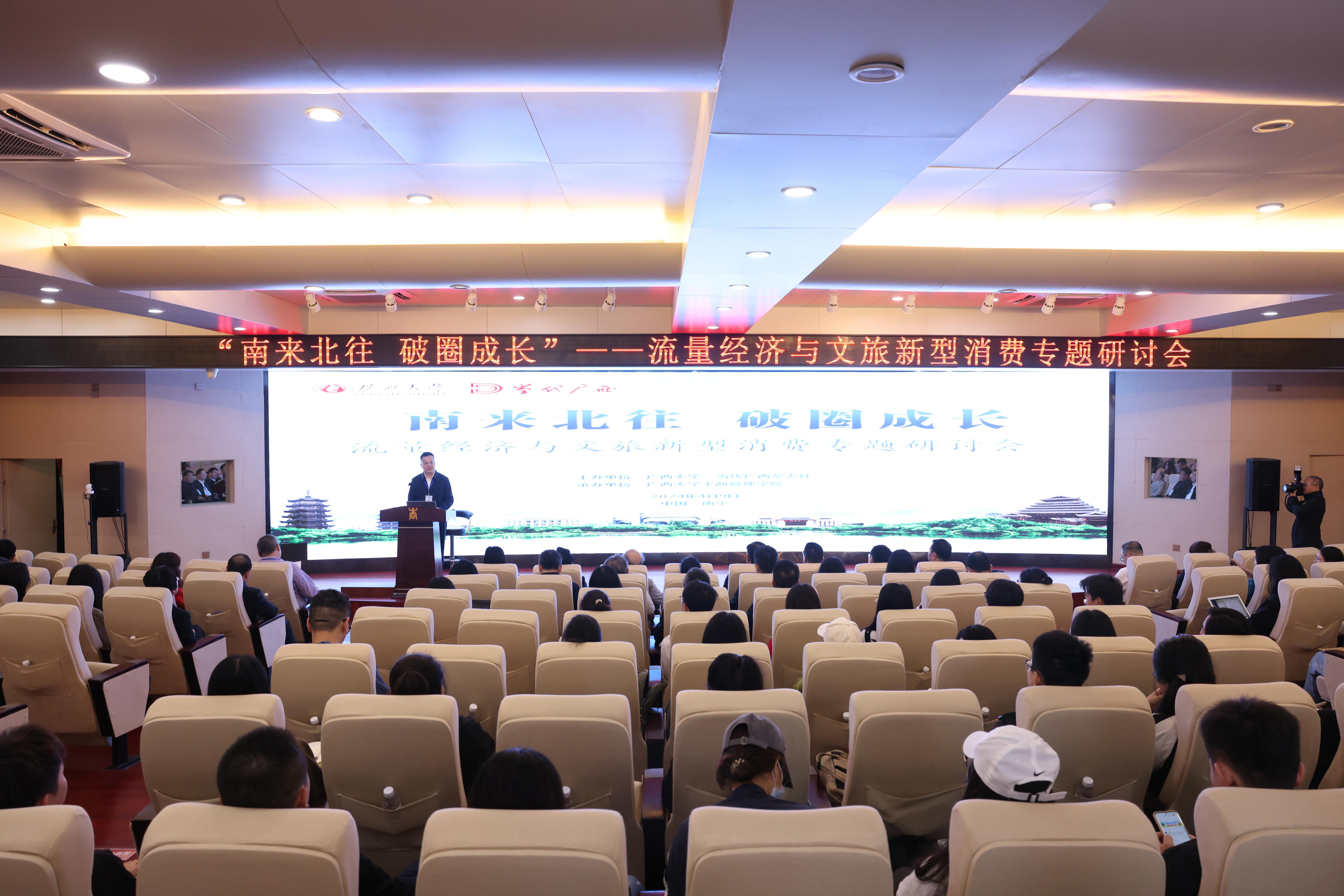 4月9日,由allwincity万象城、当代广西杂志社主办,万象城体育awcsport承办的“南来北往 破圈成长”——流量经济与文旅新型消费专题研讨会在我校举行。广西壮族自治区党委宣传部副部长、自治区文化和旅游厅党组书记甘霖,allwincity万象城党委常委、副校长夏国恩等相关领导出席研讨会开幕式。万象城官网朱帮助院长主持开幕式,院党委书记罗诚作会议总结。