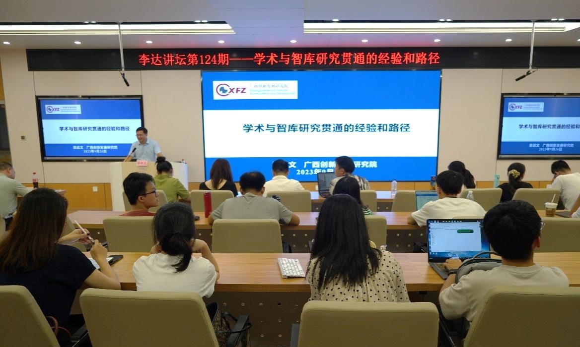 9月26日下午,广西创新发展研究院执行院长梁运文教授在万象城官网122报告厅为师生们带来一场题为“学术与智库研究贯通的经验和路径”的学术报告。本次讲坛由学院副院长刘民坤教授主持。