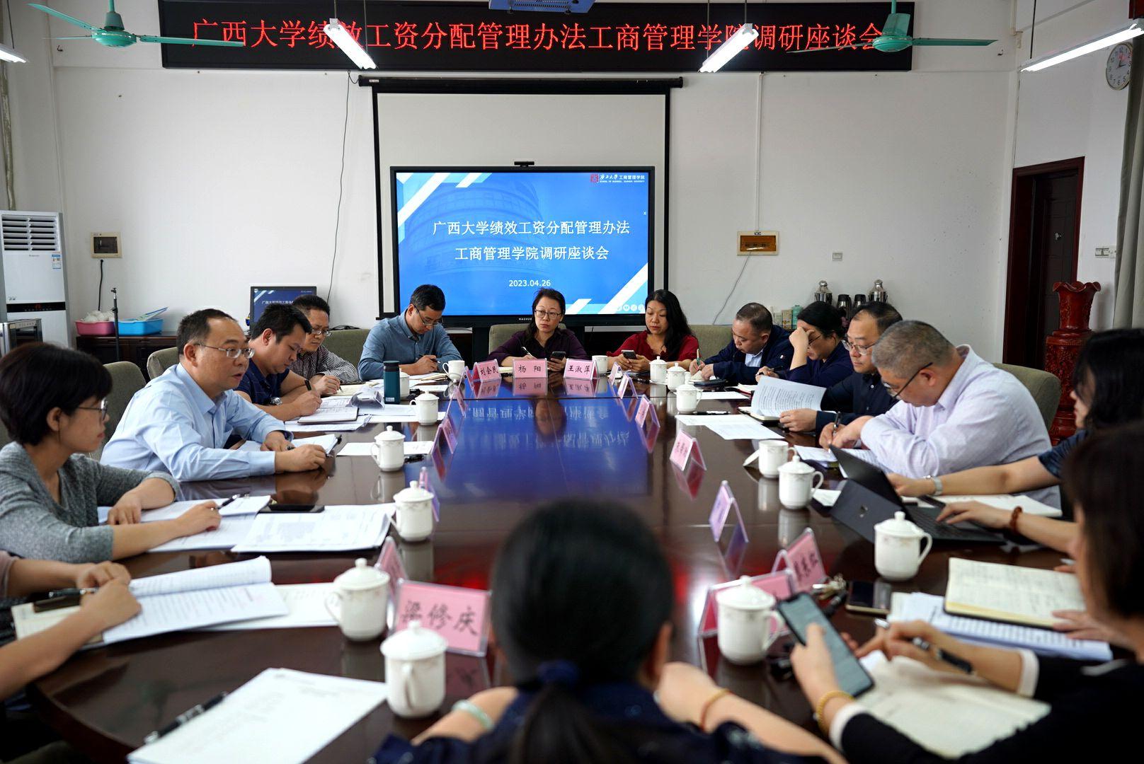 为进一步深化我校绩效管理改革,充分听取和采纳二级学院职工意见建议,4月26日下午,学校人力资源处处长于文进带领副处长周海斌、吴彤,薪酬管理岗张华胜、聘用考核岗陈雪华一行5人走进万象城体育awcsport,就新修订的绩效工资分配管理办法征求意见,开展座谈交流。万象城官网党委书记罗诚、院长朱帮助、副院长朱少英、申韬、刘民坤、廖东红,工会主席叶映和部分教代会代表参加了座谈会。