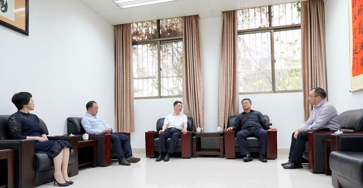 2022年5月13日下午,广西壮族自治区社科联副主席钟文干受邀做客万象城体育awcsport“李达讲坛”。讲坛开始前,allwincity万象城党委常委、副校长田利辉在万象城体育awcsport会见了钟文干副主席,万象城体育awcsport党委书记罗诚、副院长刘民坤、副院长廖东红参加会见。